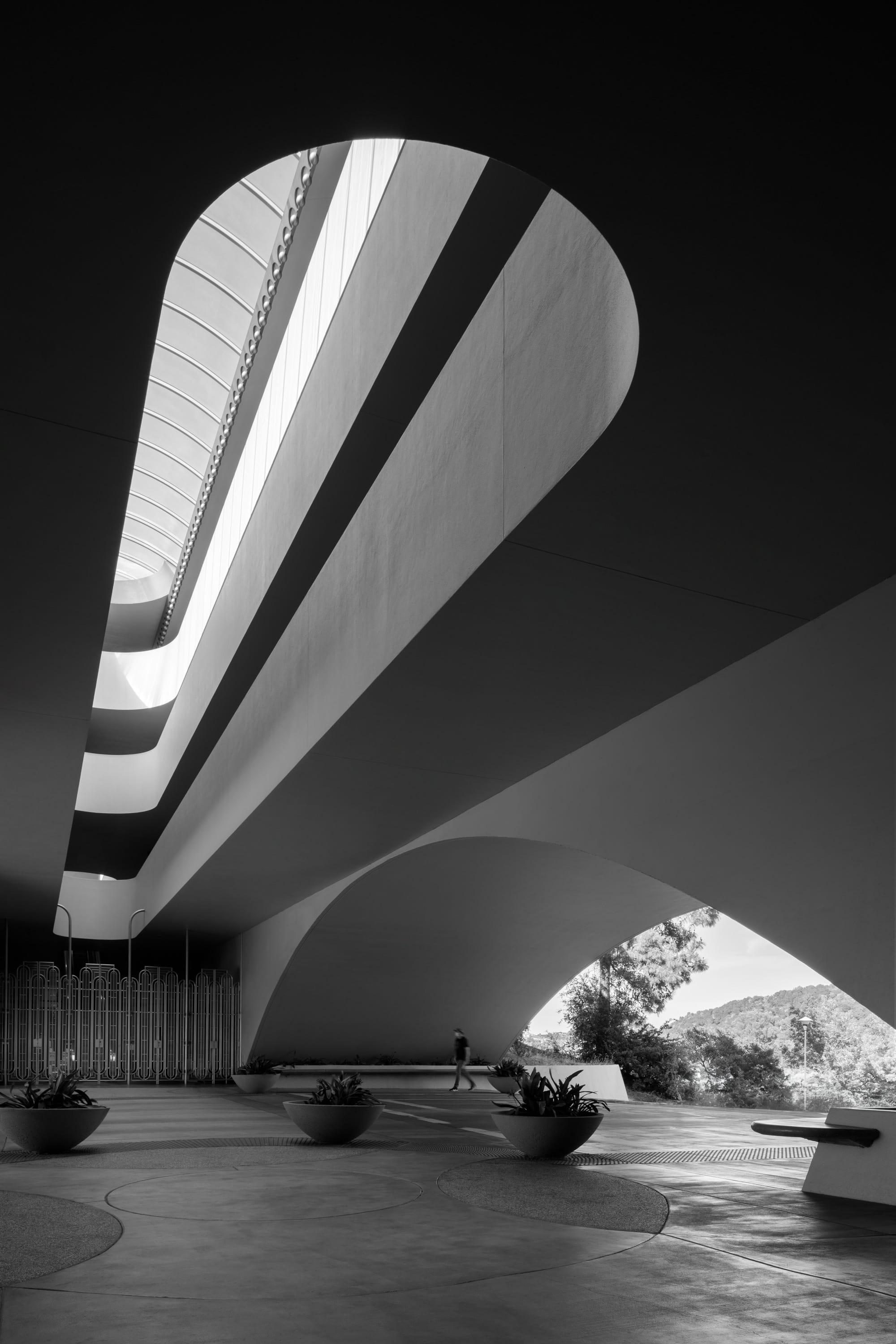 The pill-shaped openings reminded me of Frank Lloyd Wright’s Marin County Civic Center.